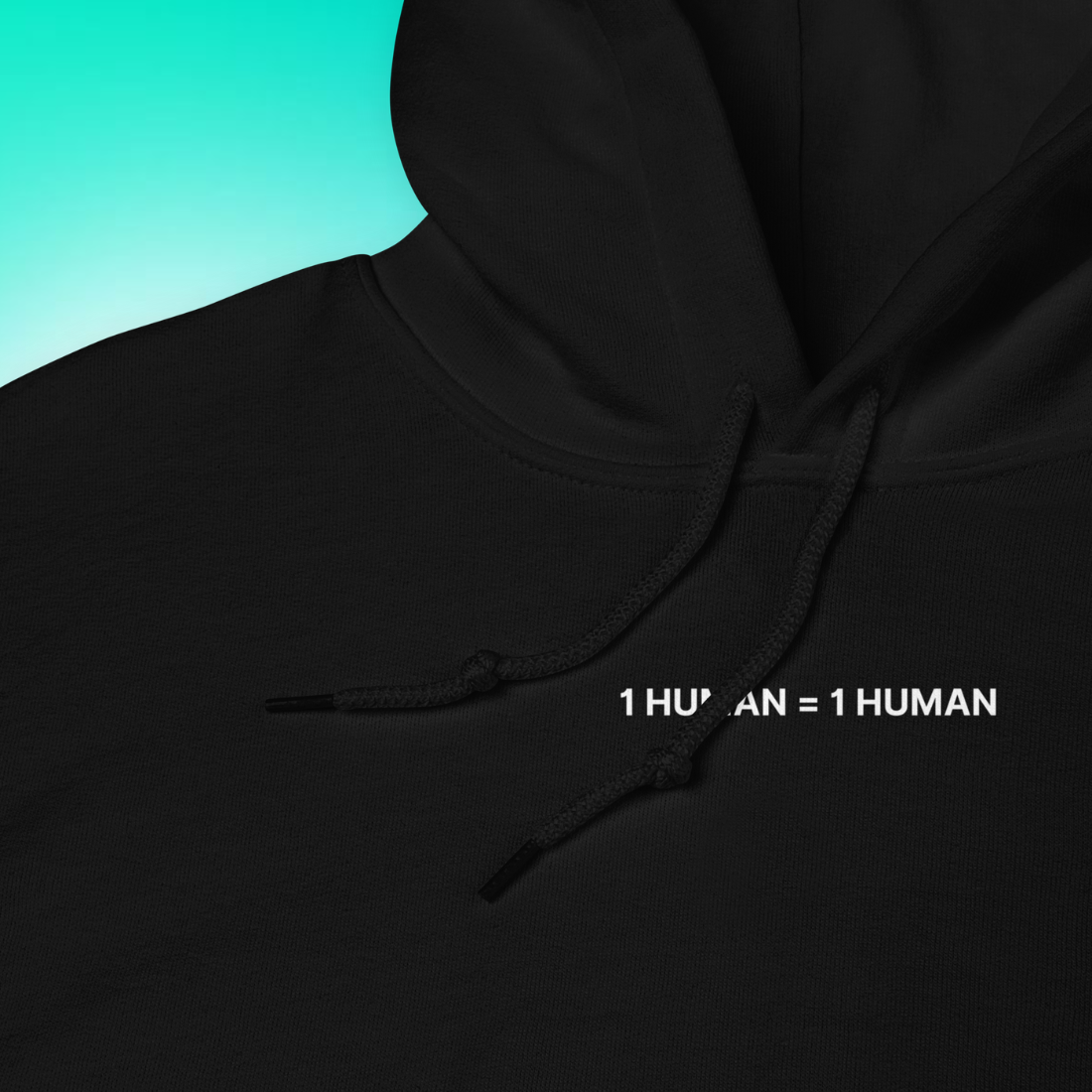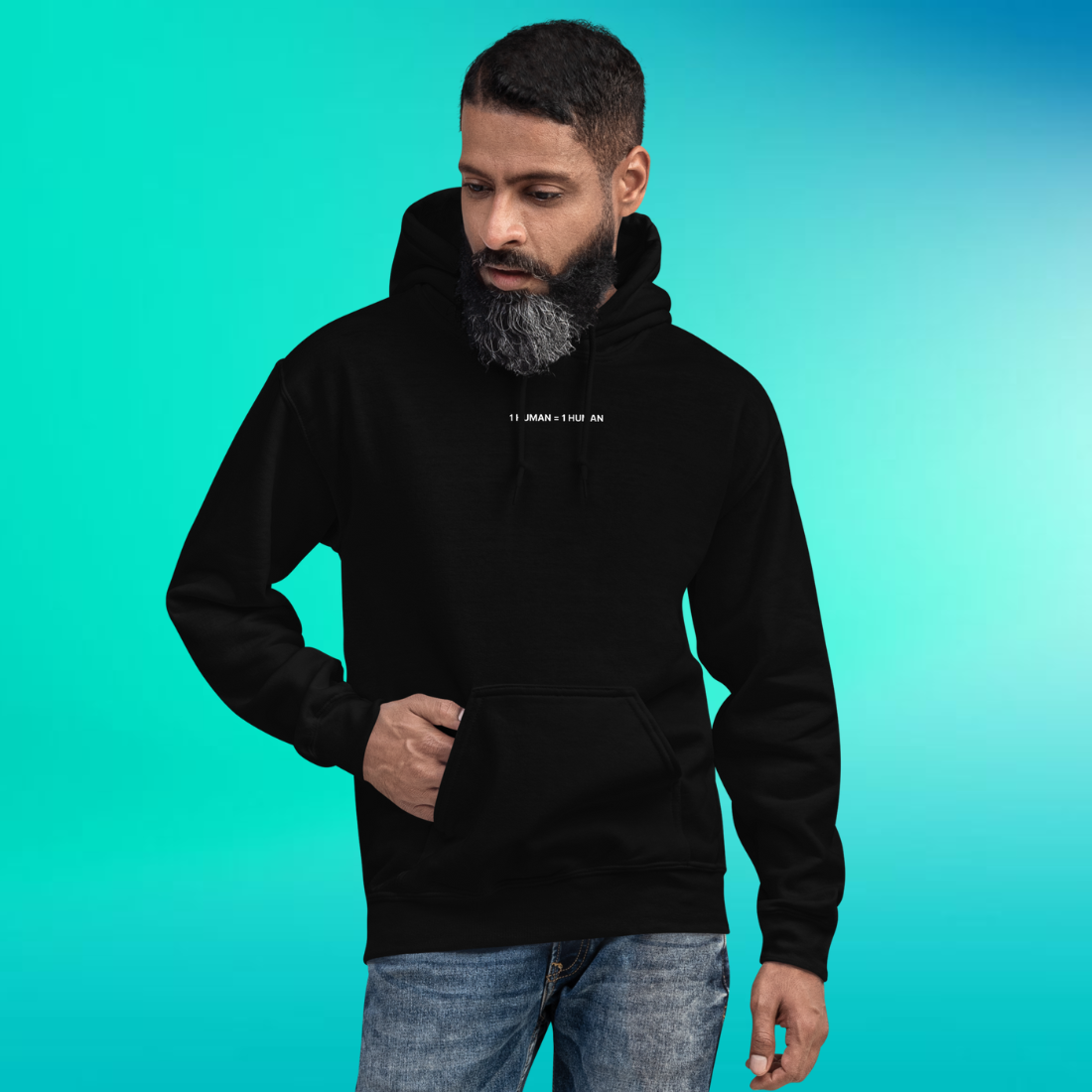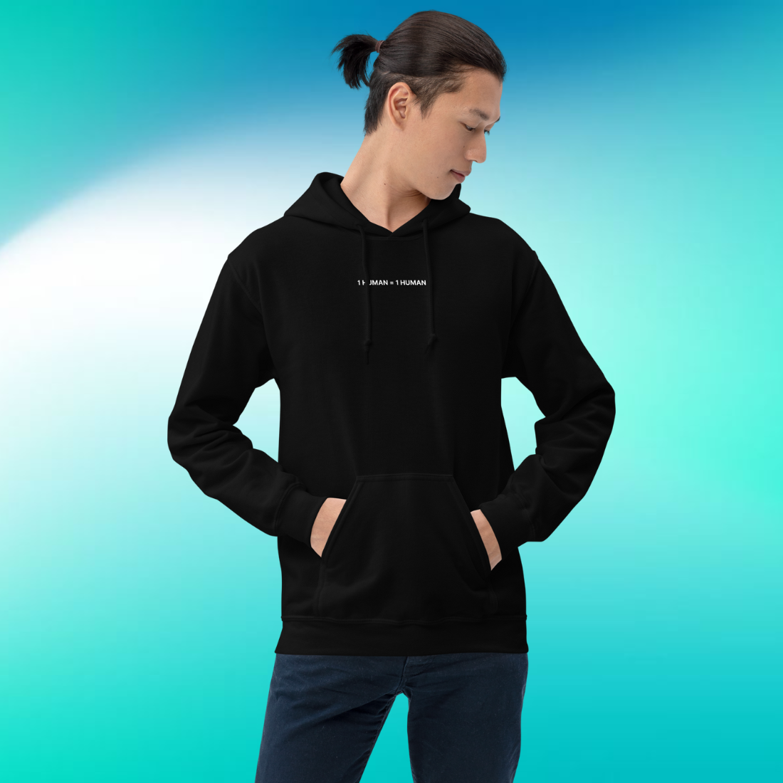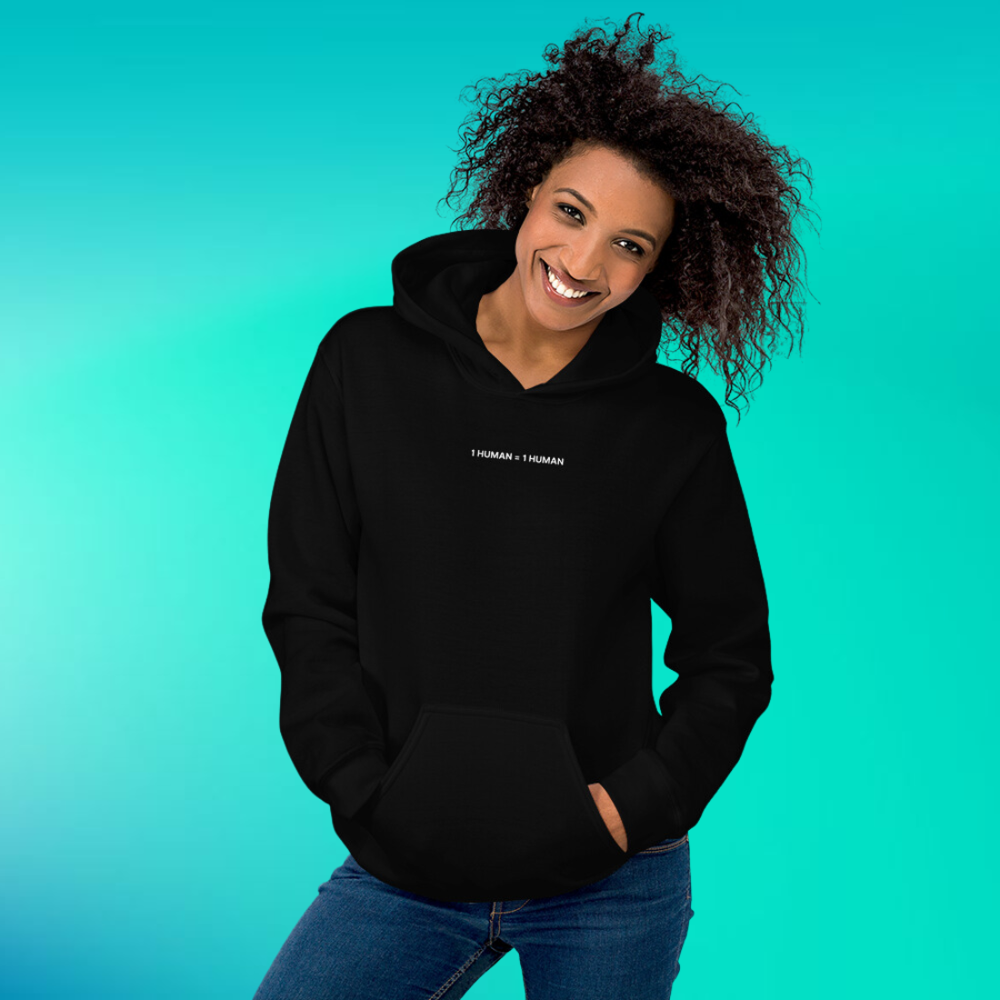 Introducing the V1 hoodie from our "1 Human = 1 Human" collection. A straightforward design with a profound message, this hoodie is a testament to our shared humanity and our commitment to reducing inequalities.