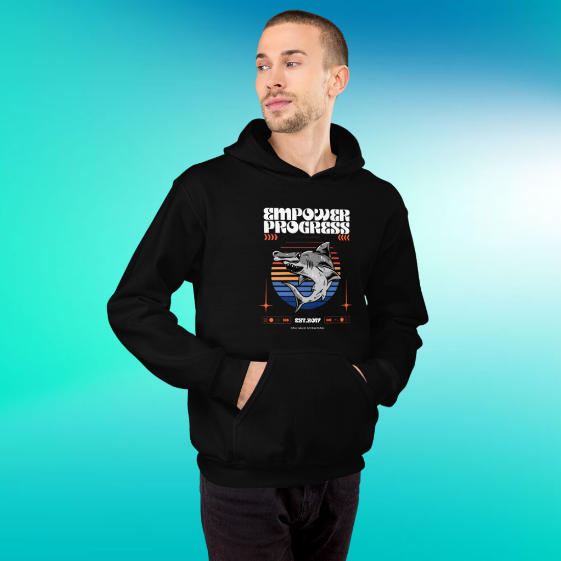 Just as the shark is a symbol of relentless progress, we strive for sustainability in our production process. Each hoodie is made-to-order, promoting a cycle of minimal waste and maximum impact. With this hoodie, you're not just making a purchase, you're making a difference. Join us and power the progress!