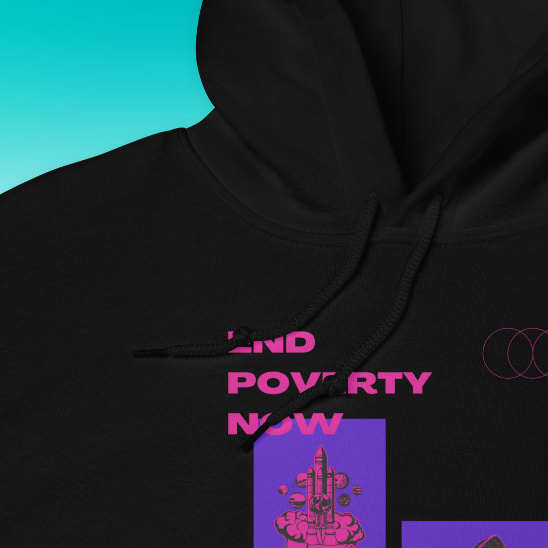 The hoodie boldly states "End Poverty Now", turning your wardrobe into a statement against poverty. Each purchase contributes 30% of the profits to initiatives committed to the No Poverty sustainable development goal.