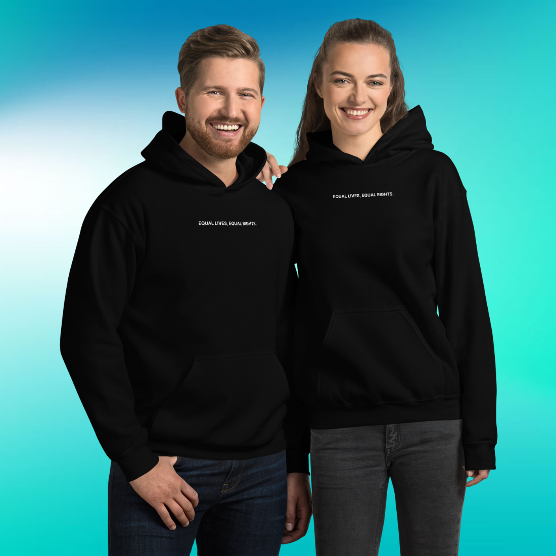 Step into the arena of equality with our "Equal Lives, Equal Rights" hoodie, a stark declaration in support of Gender Equality. This is our Version 1 design for the collection, featuring a minimalist yet striking statement that demands attention.
