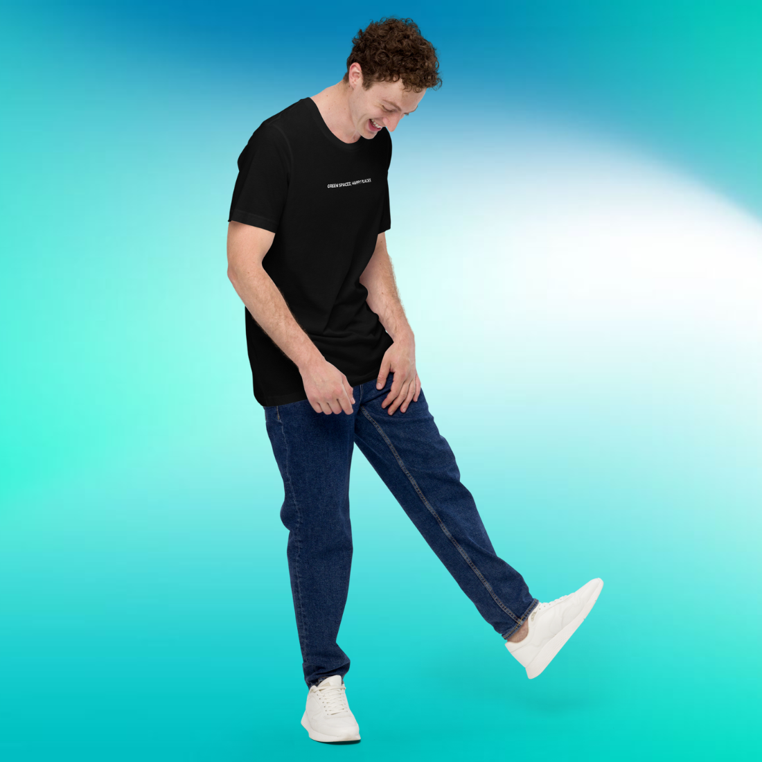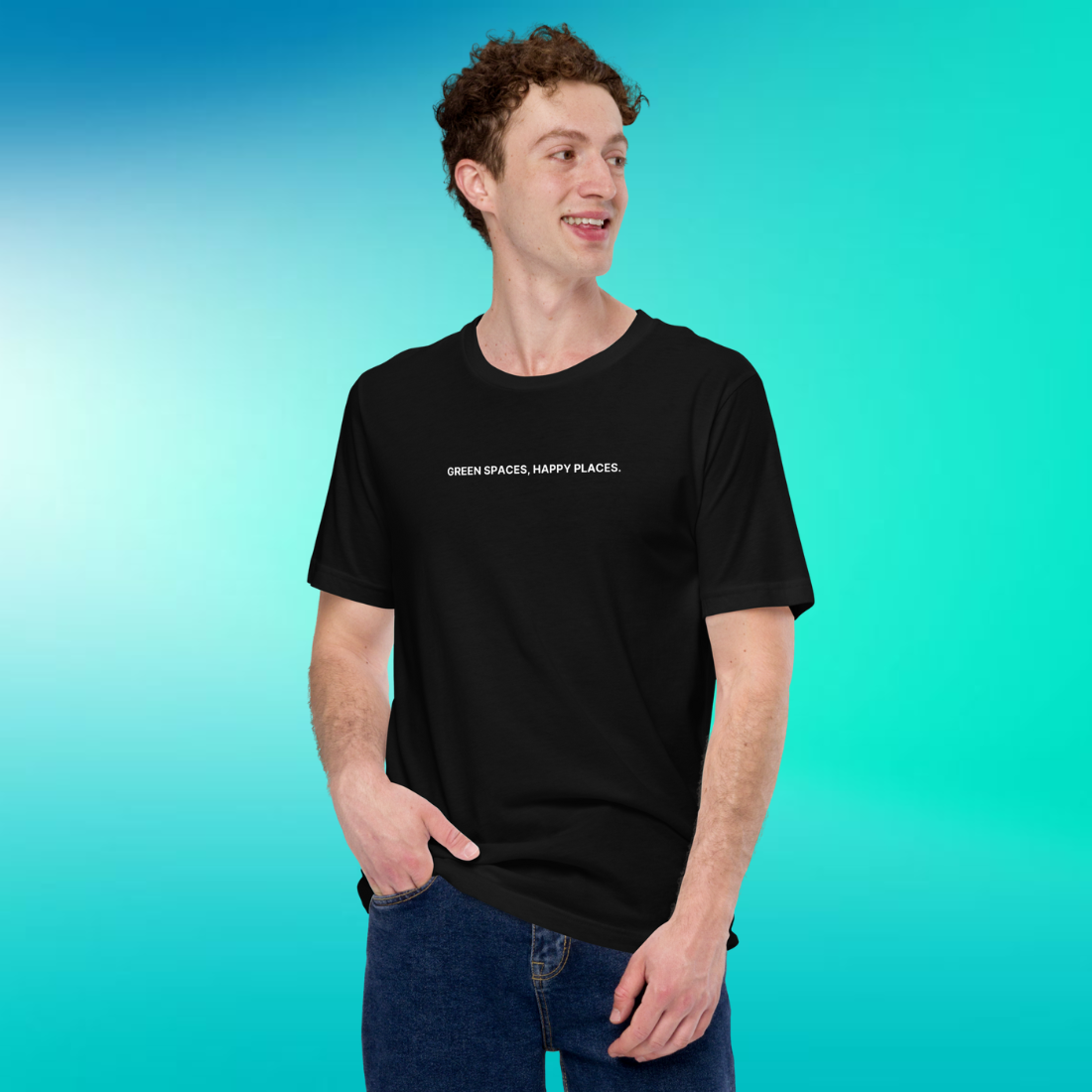 Our V1 "Green Spaces, Happy Places" T-Shirt offers style with purpose: