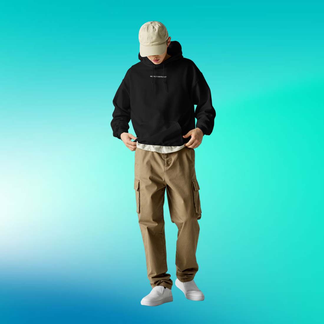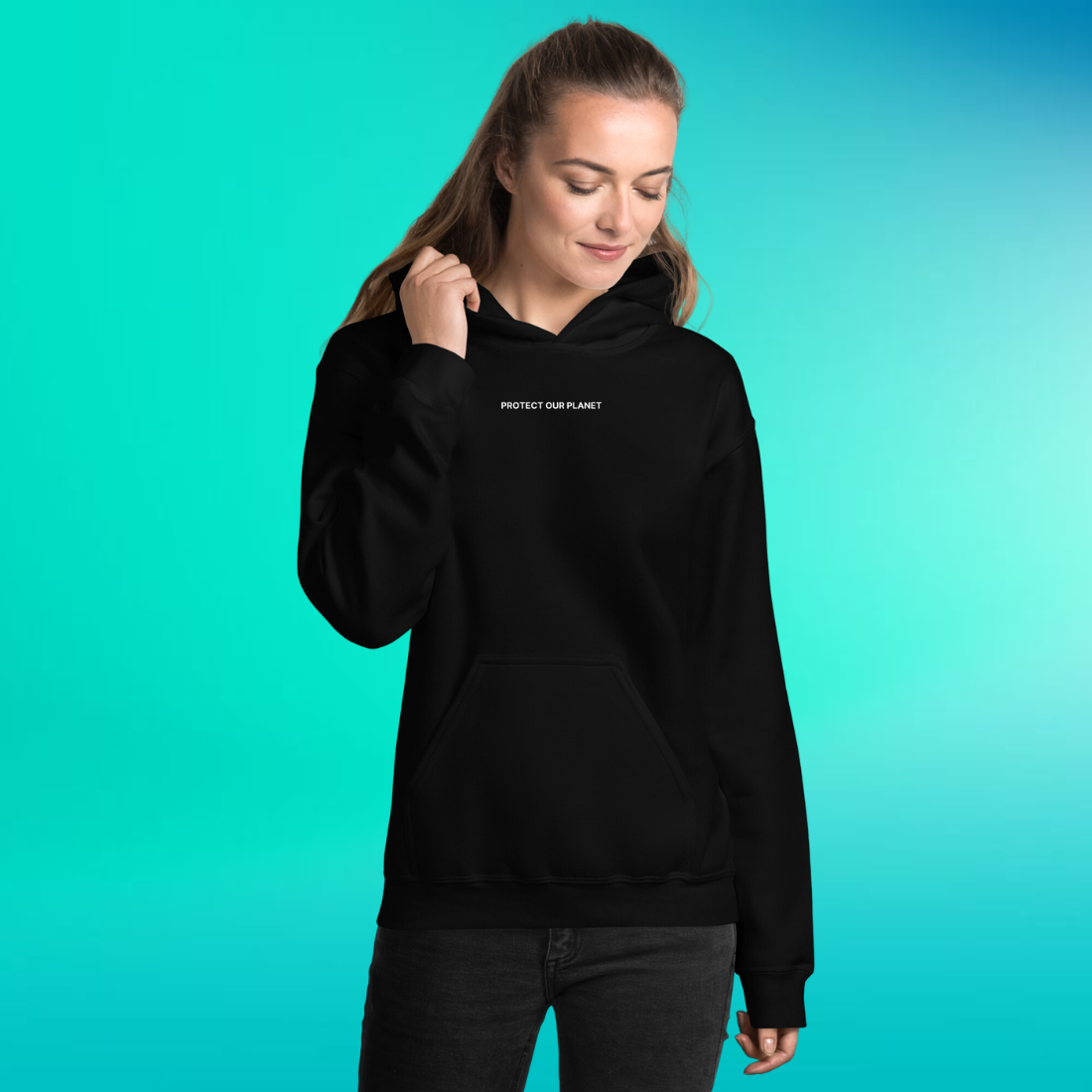 Adorned with the words "Protect our Planet" displayed in a straightforward, modern font across the chest, this hoodie serves as a reminder of our collective responsibility. It's more than just a piece of clothing; it's a commitment to Climate Action.