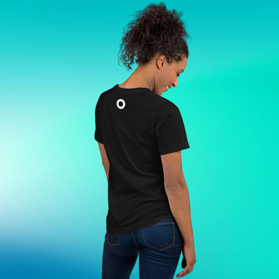 The left chest area of this t-shirt spotlights a vintage-inspired design—an astronaut serenely adrift before an abstract depiction of a planet. It's a subtle yet potent reminder of our position in the cosmos, a viewpoint that can render our conflicts insignificant and our planet even more valuable.