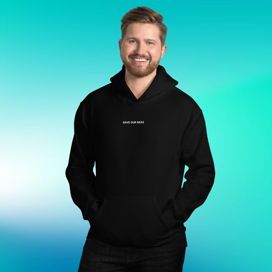 Introducing our V1 hoodie from the "Save Our Seas" collection - a cozy reminder of the mystery and majesty that lies beneath the waves. This sleek, simple design features the phrase "Save Our Seas" boldly printed across the chest, serving as a call to action for every time you put it on.