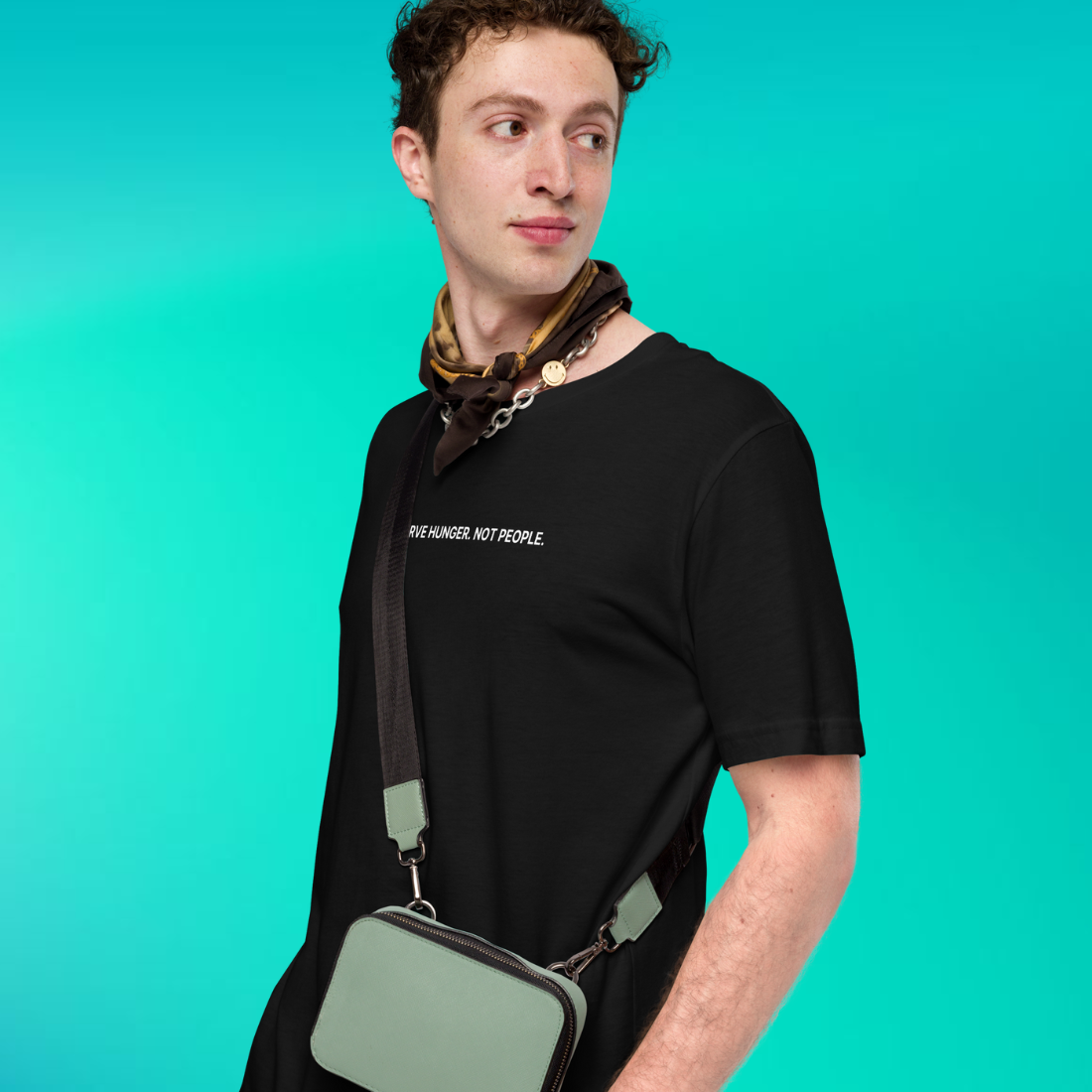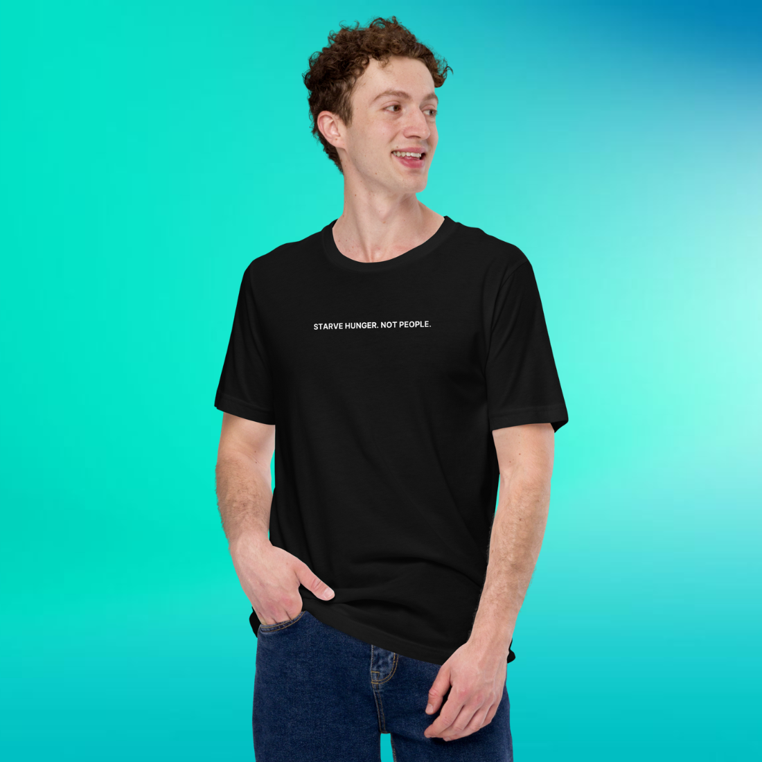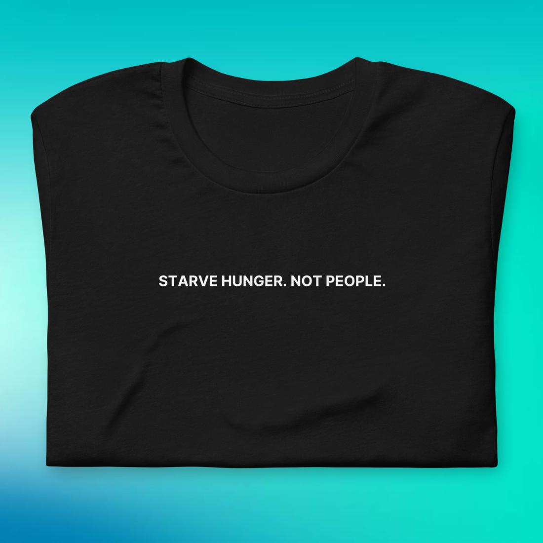 Our "Starve Hunger, Not People" V1 T-Shirt is not only impactful but also comfortable and built to last: