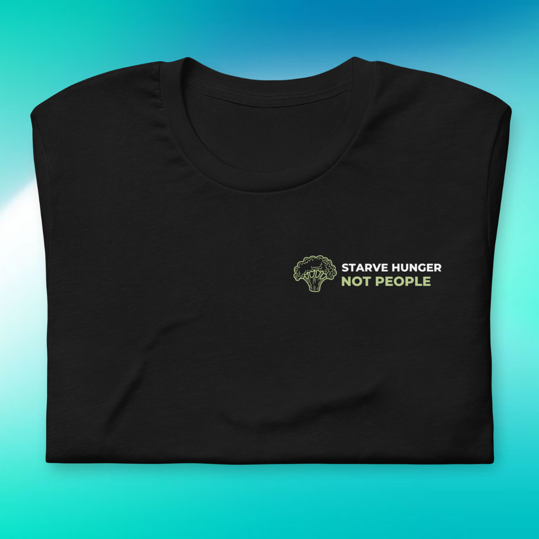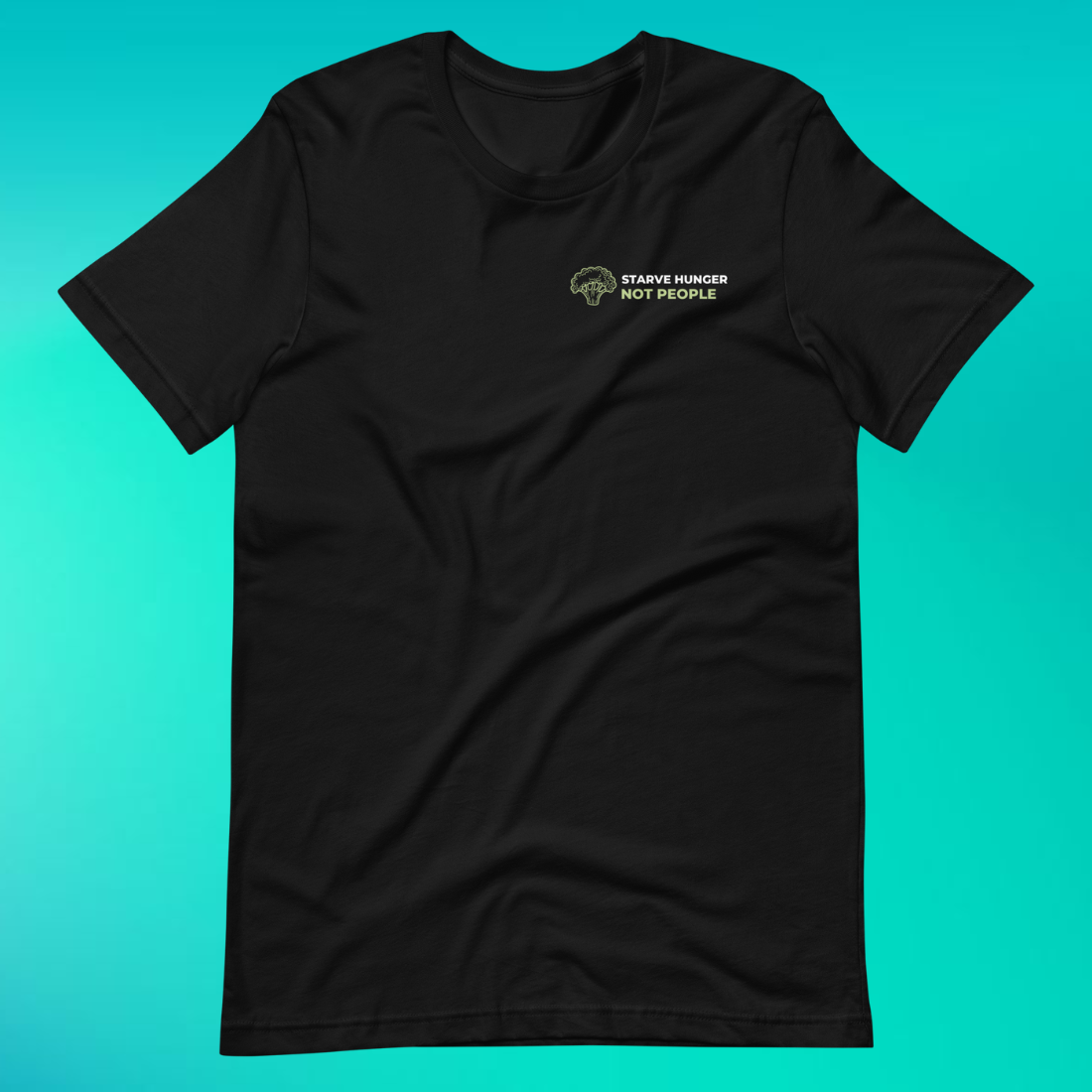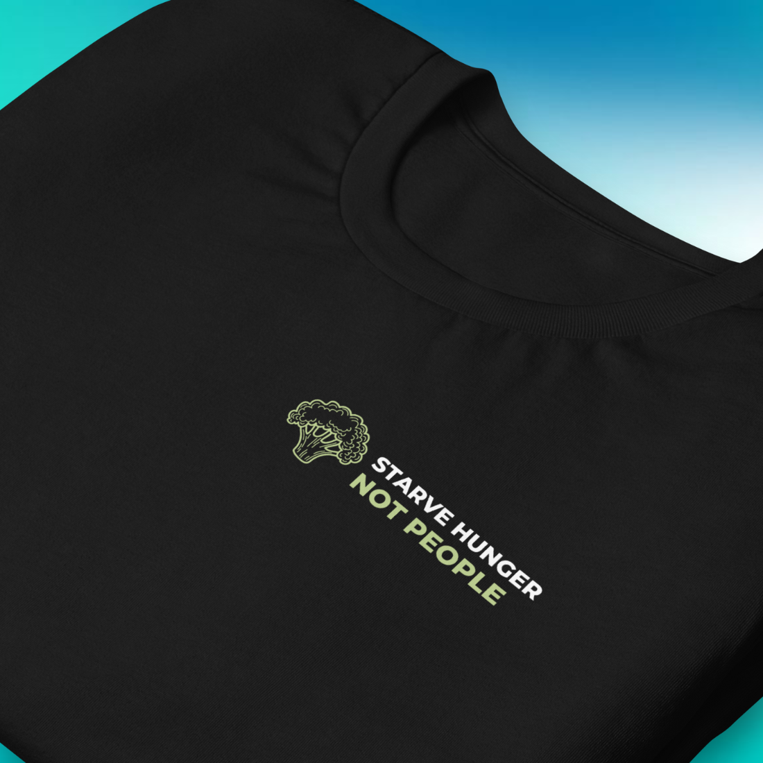 Our V2 "Starve Hunger, Not People" T-Shirt is designed with both impact and comfort in mind: